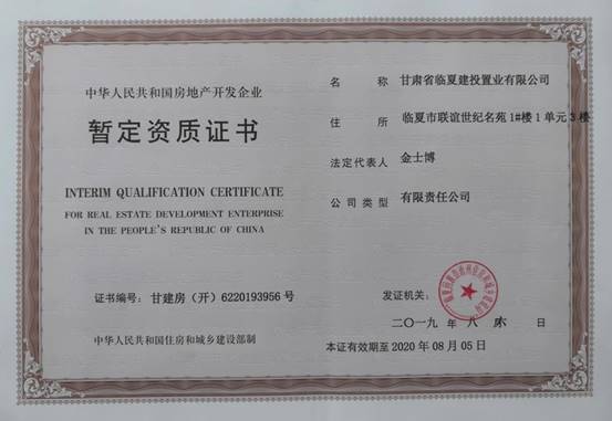 近日,臨夏公司正式取得房地產(chǎn)開發(fā)暫定資質(zhì)證書。該證書的取得標(biāo)志著公司正式進(jìn)入臨夏房地產(chǎn)開發(fā)市場。