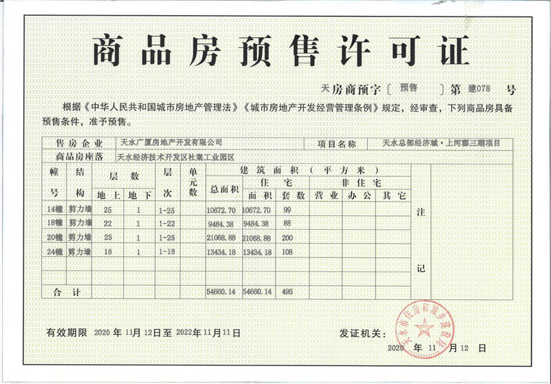 近日,天水上河郡三期項(xiàng)目取得商品房預(yù)售許可證,這是繼甘肅建投天水中心、上尚宅二期項(xiàng)目之后在手續(xù)報(bào)建上的又一重大突破,同時(shí)也標(biāo)志著天水三個(gè)項(xiàng)目建設(shè)階段手續(xù)報(bào)建工作的圓滿(mǎn)完成;天水上河郡三期項(xiàng)目商品房預(yù)售許可證的取得為該項(xiàng)目11月22日開(kāi)盤(pán)奠定了堅(jiān)實(shí)基礎(chǔ)!同時(shí)也預(yù)示著天水上河郡三期預(yù)售工作即將全面拉開(kāi)帷幕。