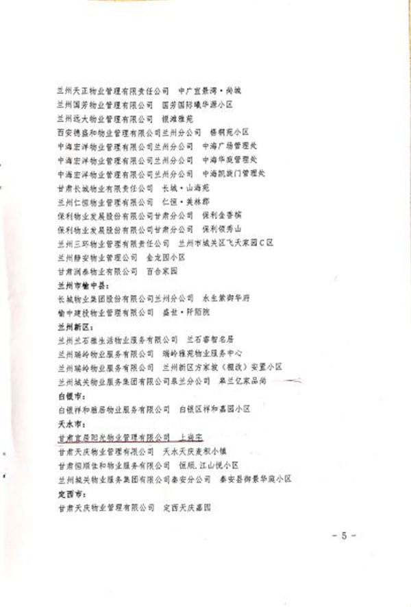 一直以來,在置業(yè)公司的領(lǐng)導下,宜居陽光物業(yè)嚴格按照“專業(yè)化,再專業(yè)化”的要求,著眼細節(jié)、規(guī)范操作,全力打造物業(yè)服務頂級、高端品牌形象。為進一步加強內(nèi)部管理,扎實做細、做精客服、保潔、秩序維護、設(shè)施設(shè)備維護保養(yǎng)等基礎(chǔ)工作,各物業(yè)中心對照《甘肅省省級示范物業(yè)項目服務評價標準》(住宅物業(yè))(公共物業(yè)),想業(yè)主所想,做貼心服務,竭力為業(yè)主提供安全、文明、整潔、滿足業(yè)主需求并且持續(xù)改進的高品質(zhì)物業(yè)管理服務,強化服務標準的落地,不斷提升服務品質(zhì),最終獲得了業(yè)主的廣泛好評、行業(yè)的認可和社會各界的贊譽。自2015年以來,蘭州建工瑞景、南河庭院、張掖濱河小鎮(zhèn)被評為“甘肅省優(yōu)秀住宅小區(qū)”,武威聚銀新都被評為“涼州區(qū)優(yōu)秀住宅小區(qū)”,天水上尚宅被評為“天水市第七批園林式居住區(qū)(單位)”,甘肅宜居陽光物業(yè)管理有限公司榮獲2019年甘肅省最佳物業(yè)企業(yè)提名獎和2020年度甘肅省疫情防控先進集體。