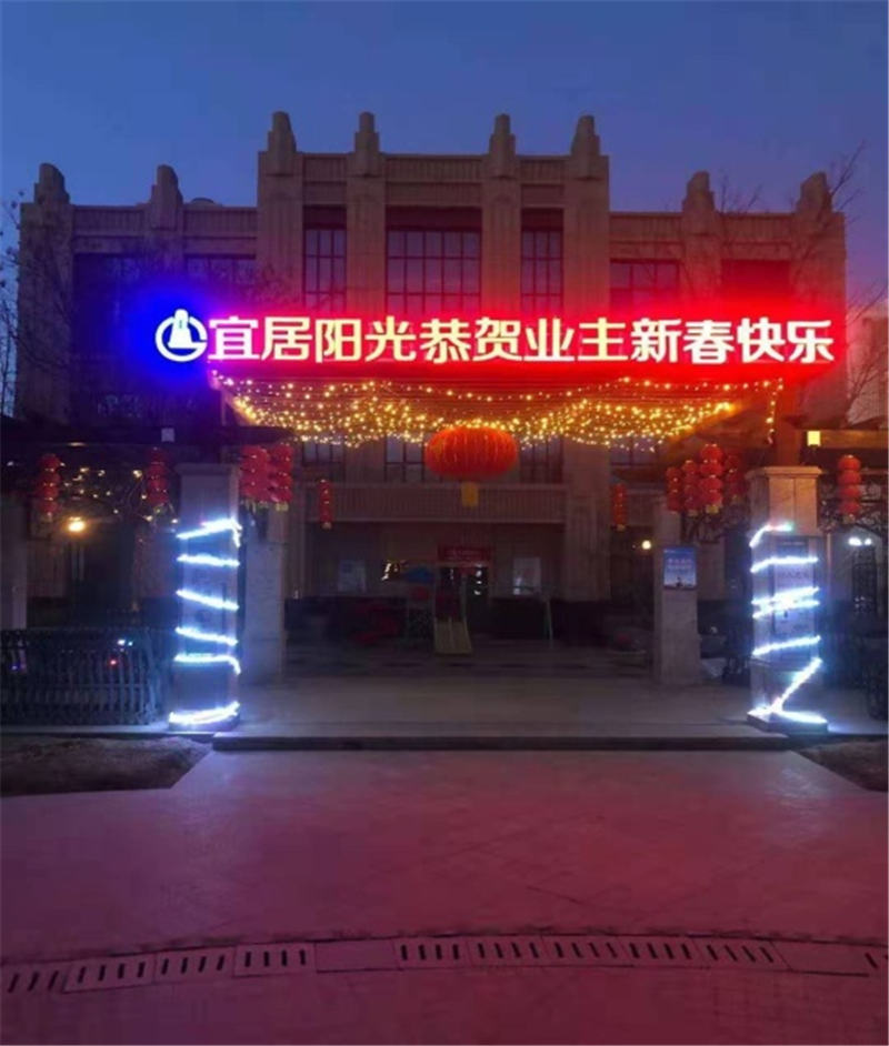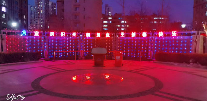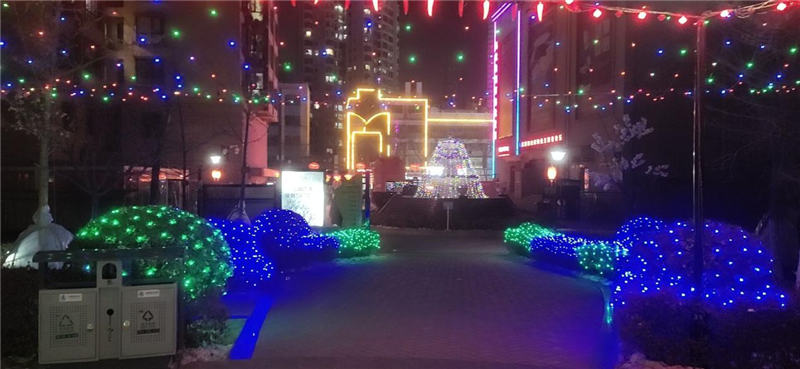 本次春節(jié)園區(qū)裝飾工作物業(yè)公司結(jié)合托管7個小區(qū)的實際情況,營造紅色“年味”,在主出入口以亮化字“宜居陽光恭賀業(yè)主新年快樂”為重點,在小區(qū)主干道及道路兩側(cè)以特色燈飾裝飾做烘托,業(yè)主目之所及之處都是一個個飛上屋檐的大紅燈籠、一幅幅貼上墻壁的對聯(lián)、一顆顆開滿“鮮花”的樹木,夜幕降臨整個小區(qū)更是火樹銀花,星光點點充滿了節(jié)日的氣氛,多層次、立體化展現(xiàn)春節(jié)風(fēng)俗,達(dá)到“賞心悅目”的節(jié)日景觀。