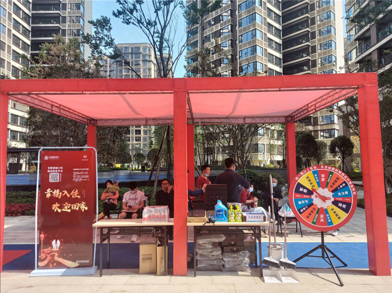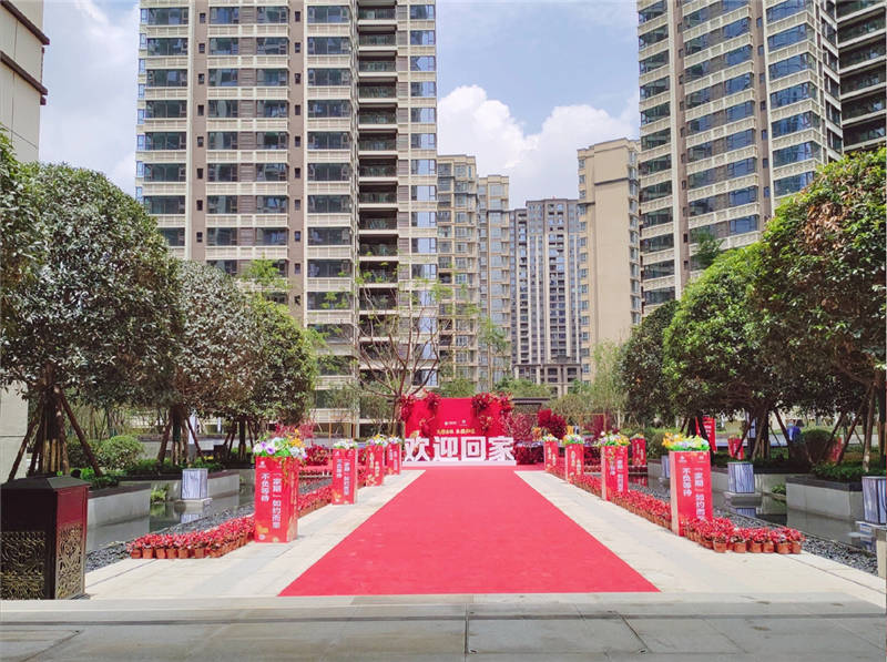 為了本次交房順利有序進行,成都公司組織專業(yè)技術人員對每一套房子進行高標準、嚴要求的預檢,對交房的各環(huán)節(jié)進行嚴格把關,并提前進行了多次交房演練。在交房前,工作人員提前為每一位業(yè)主準備好了相關查驗及簽約資料,使業(yè)主能夠在最短的時間內完成看房前的一系列程序。交付現場設置了“資料查驗區(qū)”“物業(yè)簽約區(qū)”“禮品發(fā)放區(qū)”“財務繳費區(qū)”四個功能區(qū)域,確保為業(yè)主提供快捷、有序的收房服務。除此之外,為了讓業(yè)主真正感受到回家的溫馨,在營銷中心、物業(yè)中心及小區(qū)多出處設置及張貼了“歡迎回家”的標語;小區(qū)的主道路旁及物業(yè)中心門口花團錦簇;小區(qū)入口處鋪設了紅色地毯等,喜慶、和諧、快樂洋溢在小區(qū)的各個角落……