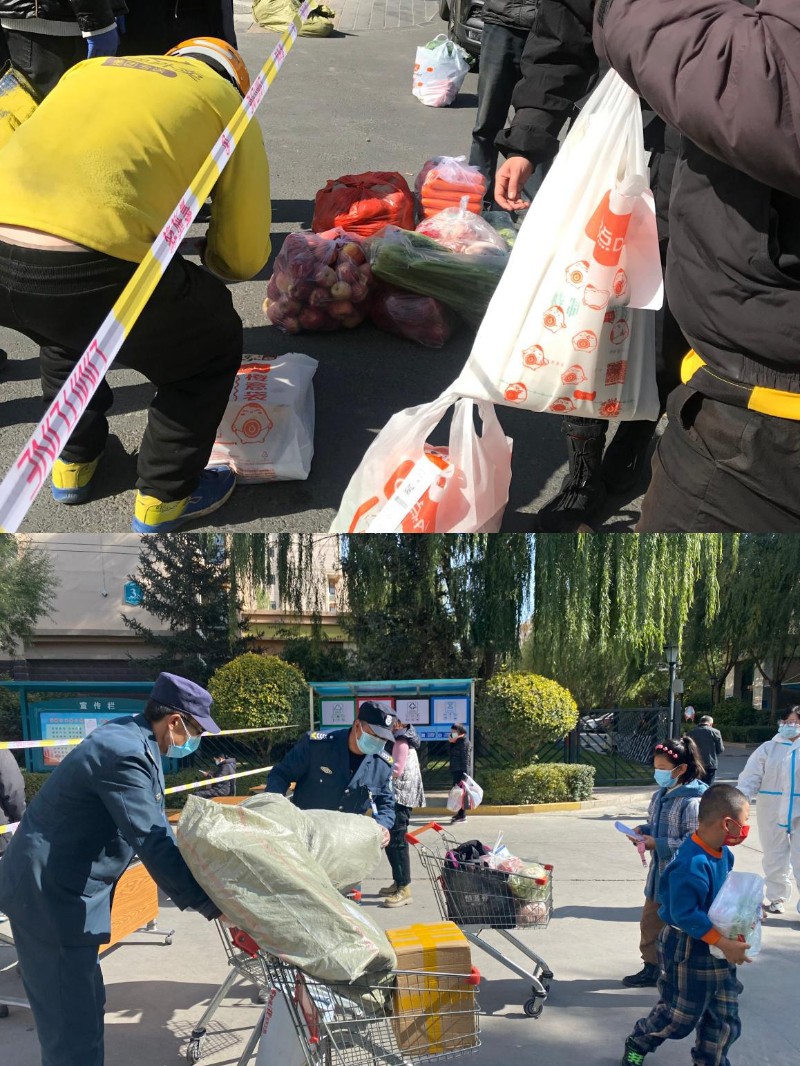 為了保證全小區(qū)住戶吃飯問(wèn)題,分公司人員和物業(yè)工作人員在濱河小鎮(zhèn)小區(qū)門(mén)口警戒線一線之隔內(nèi)外對(duì)接,馬不停蹄幫忙運(yùn)送食材及生活用品。期間分公司部分人員也加入了運(yùn)送隊(duì)伍,解決轉(zhuǎn)運(yùn)人員不足的問(wèn)題。