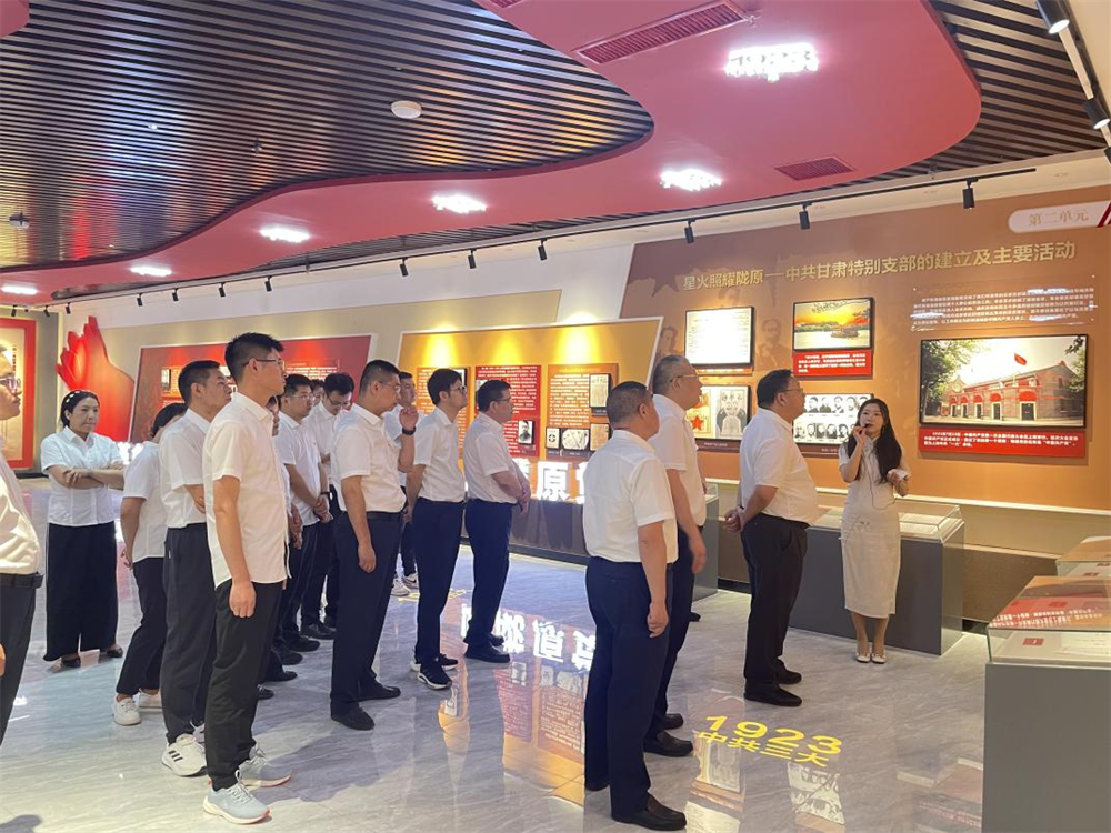 在棲云小鎮(zhèn)的甘肅特別支部體驗(yàn)課堂紅色展館內(nèi),全體黨員在講解員的帶領(lǐng)下,詳細(xì)回顧了甘肅革命的發(fā)展歷程,并通過(guò)觀看革命宣教片、紅色情景劇和閱讀書(shū)籍等方式,領(lǐng)略革命先驅(qū)的愛(ài)國(guó)精神,傳承甘肅本土的紅色基因。