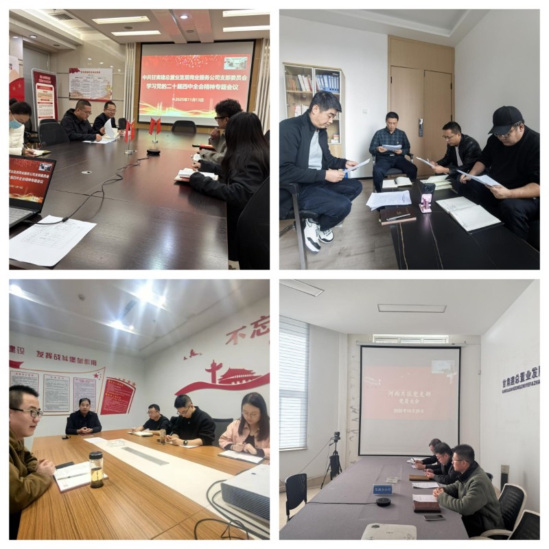 近日,置業(yè)公司各黨支部組織召開(kāi)學(xué)習(xí)黨的二十屆四中全會(huì)精神專(zhuān)題會(huì)議,旨在深入傳達(dá)和學(xué)習(xí)貫徹黨的二十屆四中全會(huì)精神,進(jìn)一步統(tǒng)一思想、凝聚共識(shí),推動(dòng)公司各項(xiàng)工作再上新臺(tái)階。