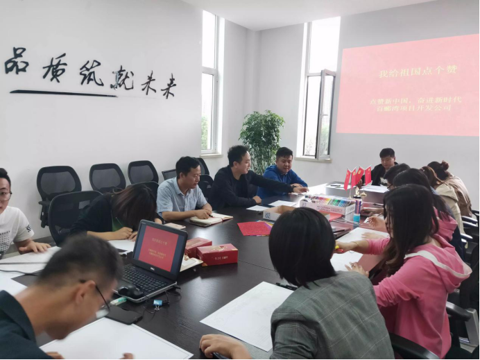 9月9日下午,百酈灣項(xiàng)目臨時(shí)黨支部在營銷中心會議室組織開展“我給祖國點(diǎn)個(gè)贊”制作趣味手抄報(bào)活動,置業(yè)公司工會主席、副總經(jīng)理、百酈灣項(xiàng)目開發(fā)公司經(jīng)理石磊與項(xiàng)目公司14名員工共同參與了活動。