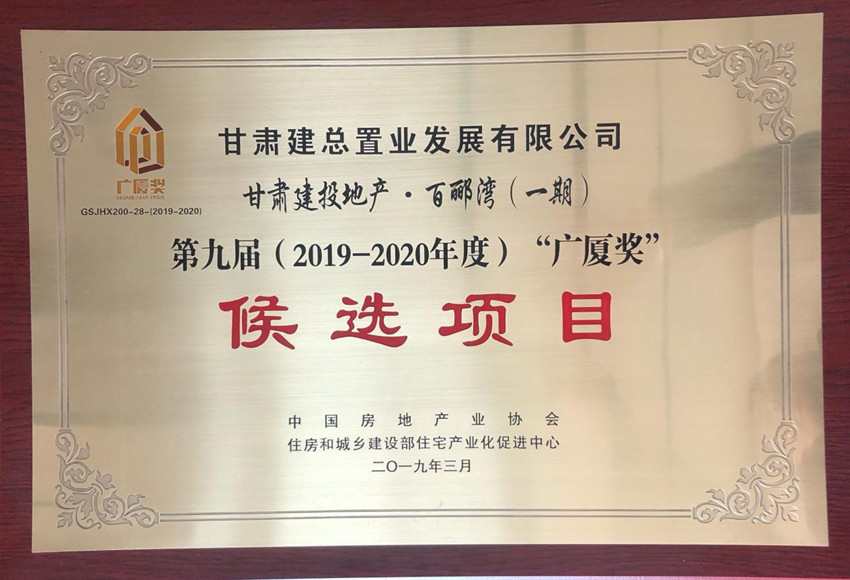 4月11日,在中國房地產(chǎn)協(xié)會各地房協(xié)會長、秘書長工作會議上,“甘肅建投地產(chǎn)•百酈灣(一期)”項目入選第九屆(2019—2020年度)“廣廈獎”候選項目。