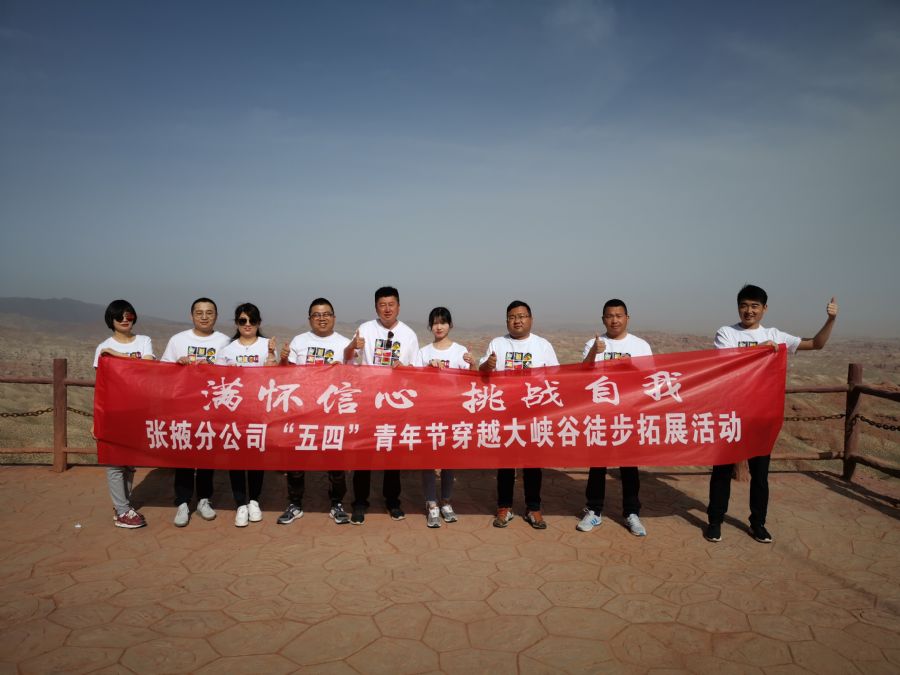 今年是五四運(yùn)動(dòng)100周年,為響應(yīng)黨的號(hào)召,鼓舞青年員工砥礪奮進(jìn),張掖分公司組織開(kāi)展了“滿(mǎn)懷信心,挑戰(zhàn)自我”的主題徒步拓展活動(dòng)。